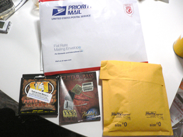 ケーラーUSA プロダクトのページ見ると、色々ある。 そういえば、Megadethのムス大佐とマーティはケーラーのFIXEDタイプ、アームがないものをギターに載せていたってのを思い出した。 う は w w w こ れ だ !!!! 滅多にアーム使わない、チューニングをコロコロ変えるという俺にピッタリじゃないか。 アリアギター サウンドハウス 国内で買えるのは、これぐらいかな。ESP系列のカスタムショップ、BIGBOSSなんかにもあったりするけど、5万円とかめちゃくちゃ高い値段ついてた。 型番見るとわかるんだけど、7000番台のは安い。 2000番台のは高級品みたいね。 困った。お金がある訳じゃないし……。 というか、日本に来るだけで+1万~3万も値段上がってるってどういうこと? しかも、アームなしのケーラートレモロは日本のサイトじゃ見つからないし。 これは、海外に注文するしかない!!!! ってな訳でググると、 ありましたありました。 Wammi Wolrd おおおおおおおおおおおおおおおお安いしかも世界中どこでも発送するって書いてあるwwwwwwwwww キタ━━━(゚∀゚)━( ゚∀)━( ゚)━( )━( )━(゚ )━(∀゚ )━(゚∀゚)━━━!! そ、それだけじゃねえぞ!! Kahler 7330 こんないいものが!!! ケーラーのオフィシャルサイトになかったぞ!!! 今、1ドル99円ぐらいだから、119ドルで大体12000円ぐらい。やっすwwwwwwwwwww 送料込みでも、これはきっと安く手に入るぞ!!! うーん、ある程度英語勉強しといてよかった。見て、注文して、メールでどれぐらいで届くか質問まで出来た。 送料は、10ドルぐらい。やっぱり安いじゃーんwwwwwwww これは来たと言わざるを得ない……。 3/28日の深夜に注文して、 4/3日の朝、届きました。こんな感じ。 うっひょー、海外から郵便物来たの、生まれて初めてだよー。 住所微妙に間違って書いちゃってたけど、届いてよかったwwwww なんか、おまけでSITの弦まで付けてくれちゃって。最高だよwwwwww 2008.04.04 Fri 03:01:21 RR-J2Kの話その1去年の夏に買ったRR-J2K。 Kと付くのは、ブリッジがケーラートレモロだからだ。 本当は、フロイドのが良かったんだけど、店に何故かケーラー仕様のやつしかなくて、試奏したら割と良かったので買った。Slayerのケリー・キングやハンネマンも使ってるからいいかー、という何ともアホ臭い言い訳を自分にしながら。 ちなみに、これが人生初の変形ギターだった。 ここ最近は、別のギターをメインで使ってて出番が無かったが、機材整理をして、何をどういう風に使うか決めた結果、こいつを準レギュラーとして置くことに決めた。 バンドでは、2音下げ、2音半下げの曲をやるので、フロイドのRR-J2SPでは対応出来ないし、ギター二本とエフェクトボードを担いでスタジオまで行く元気もない。 と、言う訳でチューニングをその場その場で変えられるギターが欲しくなったと。 最初は、ボルトオンのRRVのフロイドをベタ付けにしてやってたけど、色々と気に食わないことが起こったので(フロイドベタ付けはダメだわ)、ケーラートレモロのこいつを使おうと。ケーラーなら、半音程度の上げ下げは、なんとかなるだろうと。 で、使ってみたら、びっくり。1弦24フレットでチョーキングしたら、音が伸びない。プツッ! と切れてしまう\(^o^)/オワタ ケーラートレモロの欠点は、このサスティンの無さ。 そりゃ、3~5本のバネで弦を引っ張ってるフロイドはバネと共振してサスティン伸びますよ。 めちゃくちゃ小さいバネで弦を引っ張ってるケーラーは、逆にサスティンを殺しているようなものだ。ブリッジの駒も、ローラータイプだし、余計に振動を殺してる。滑らかなアーミングと引き換えにサスティンを犠牲にしてるトレモロだからね。 そんなんだから、ギターソロの最後にカッコよくチョーキングしたら、プツッ!! (;^ω^) これはいかん…。しかも、しばらくアーム使ってなかったせいか、前に色々いじったせいか、アームが全然入らない。グルグル回していると、少し回しただけで止まってしまう。これではアームが使えない……。 なんとかせねば……、と思い立って、考えてみた。 1、諦める 2、ブリッジを交換する 3、我慢する 長いこと悩んだけど、2に決めた。 続きは、その2で。 2008.04.03 Thu 12:49:33 こっちで好き勝手やろうかと思います。____